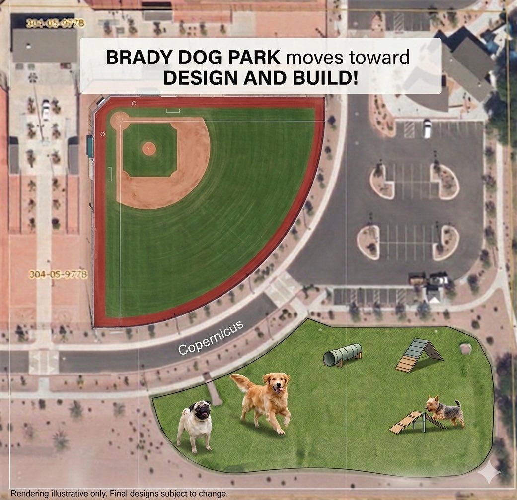 The City of Mesa has also published details about the dedicated Brady Dog Park project page, which outlines plans for a new 1-acre dog park expansion at the existing park located at 7045 E. Monterey Avenue in Mesa.